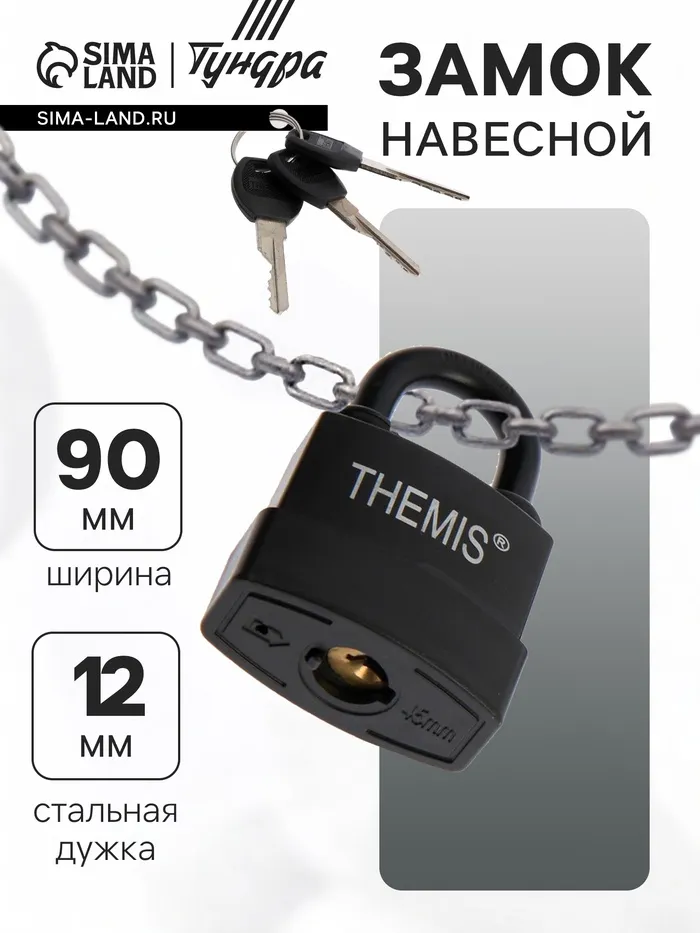 Замок навесной гаражный ТУНДРА, 90 мм, 3 ключа. — Характеристики