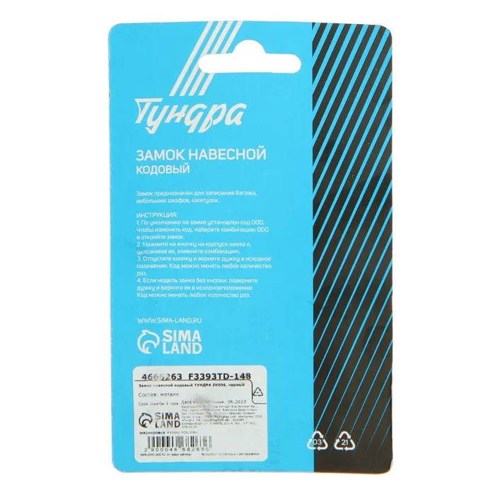 Замок навесной кодовый ТУНДРА ZK006, черный — Характеристики