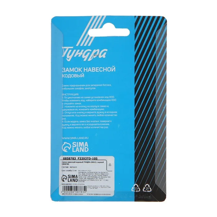 Замок навесной кодовый ТУНДРА ZK013, черный — Характеристики