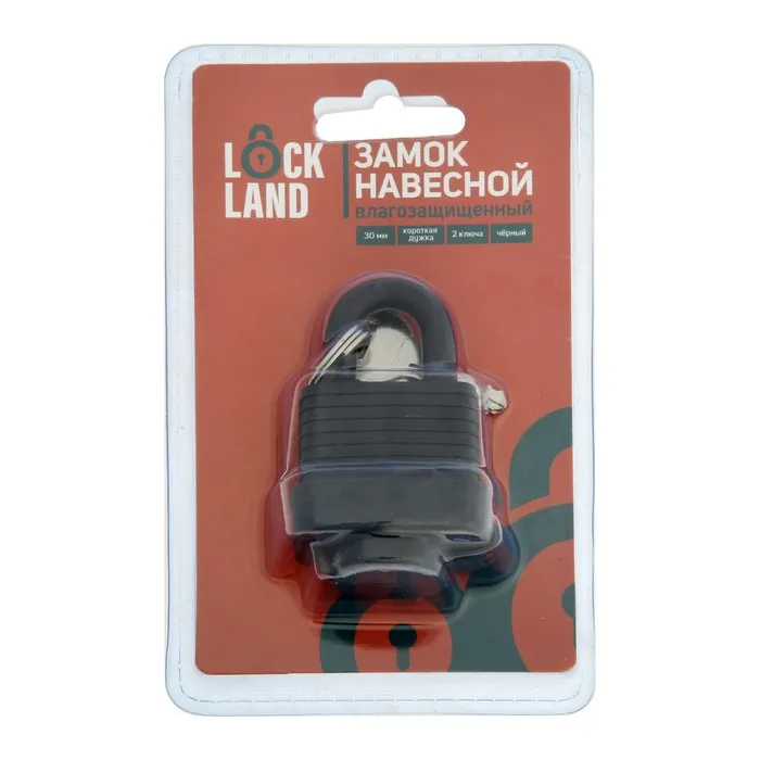Замок навесной LOCKLAND, 30 мм, влагозащищенный, короткая дужка, 2 ключа, цвет черный — Характеристики