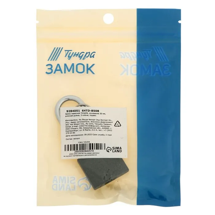 Замок навесной ТУНДРА, основание 30 мм, длинная дужка, 3 ключа, подвес — Характеристики