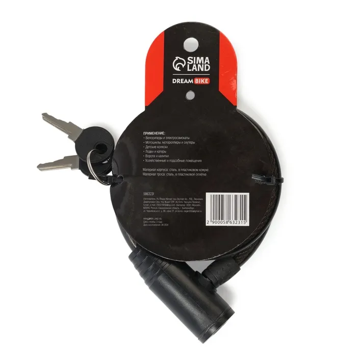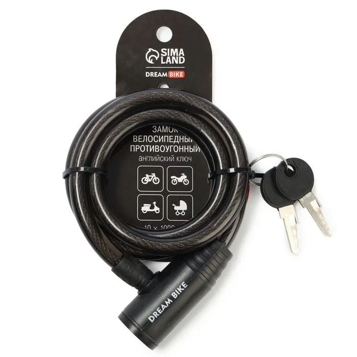 Замок навесной велосипедный Dream Bike, 10х1000 мм, английский ключ с пластиковой ручкой — Характеристики