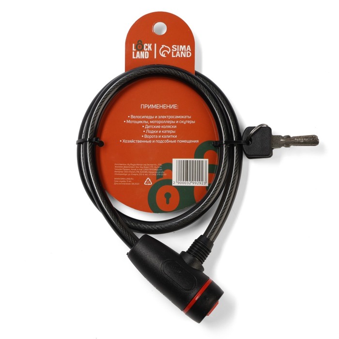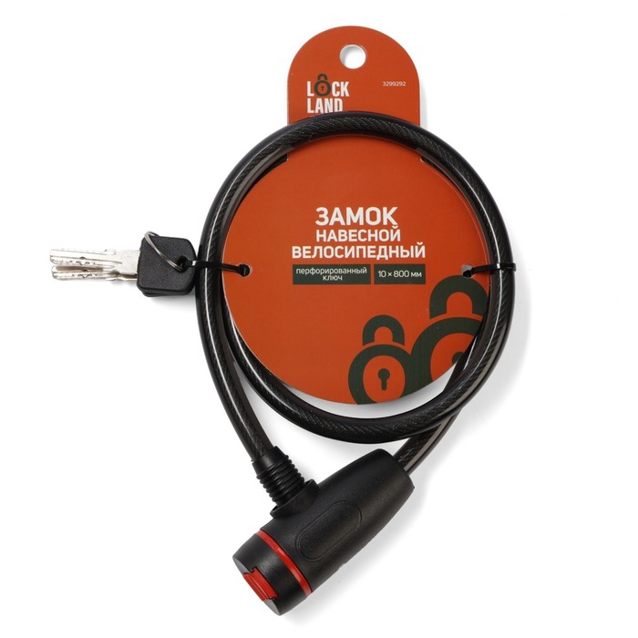 Замок навесной велосипедный LOCKLAND, 10х800 мм, перфорированный ключ с пластиковой ручкой — Характеристики