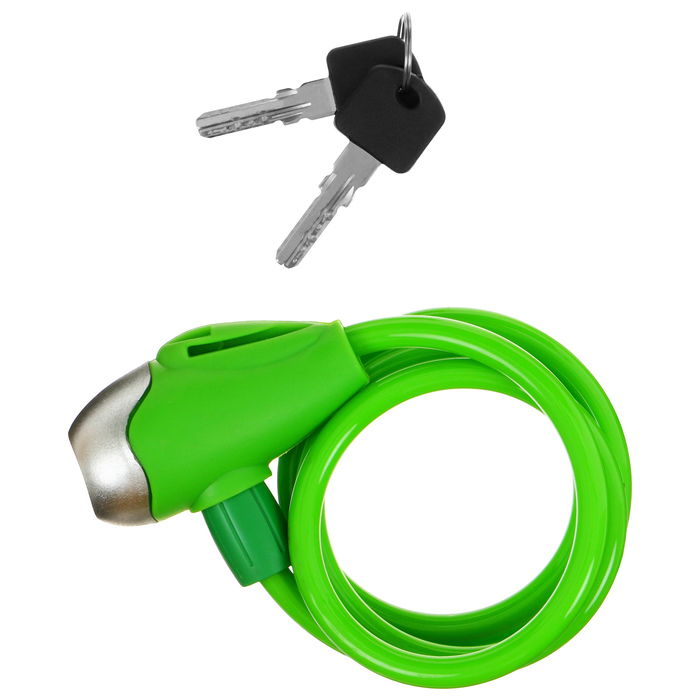 Навесной замок с тросом не даст украсть ваши вещи в подъезде или на улице. Подходит для велосипедов, детских колясок, санок. Трос изготовлен из стали и покрыт пластиковой оболочкой.
