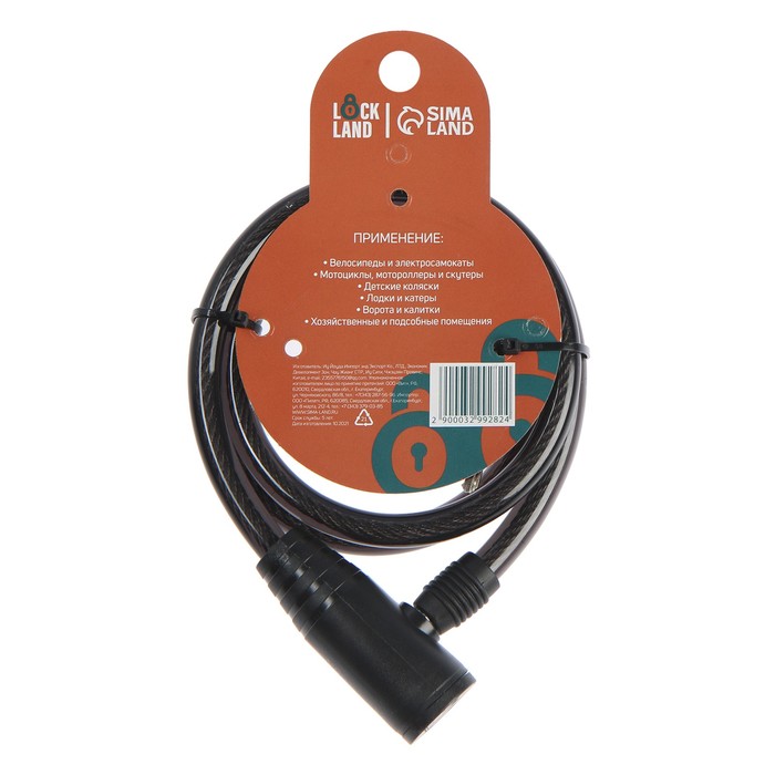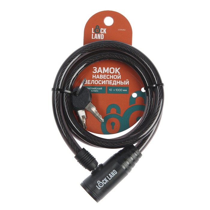 Замок навесной велосипедный LOCKLAND, 10×1000 мм, английский ключ с пластиковой ручкой — Характеристики