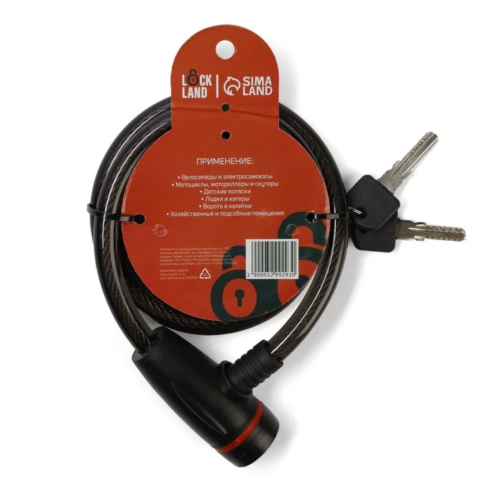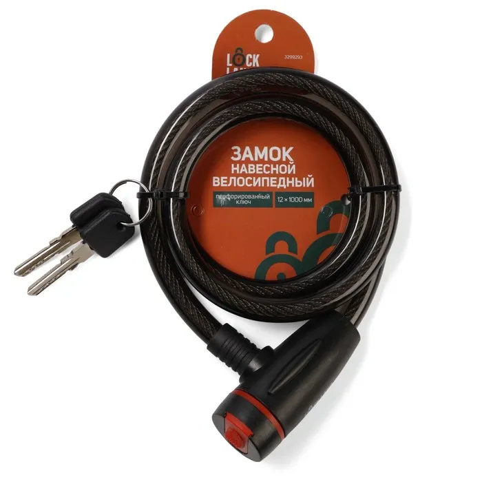 Замок навесной велосипедный LOCKLAND, 12х1000 мм, перфорированный ключ с пластиковой ручкой — Характеристики