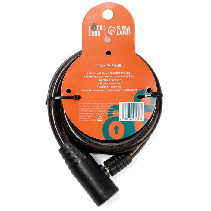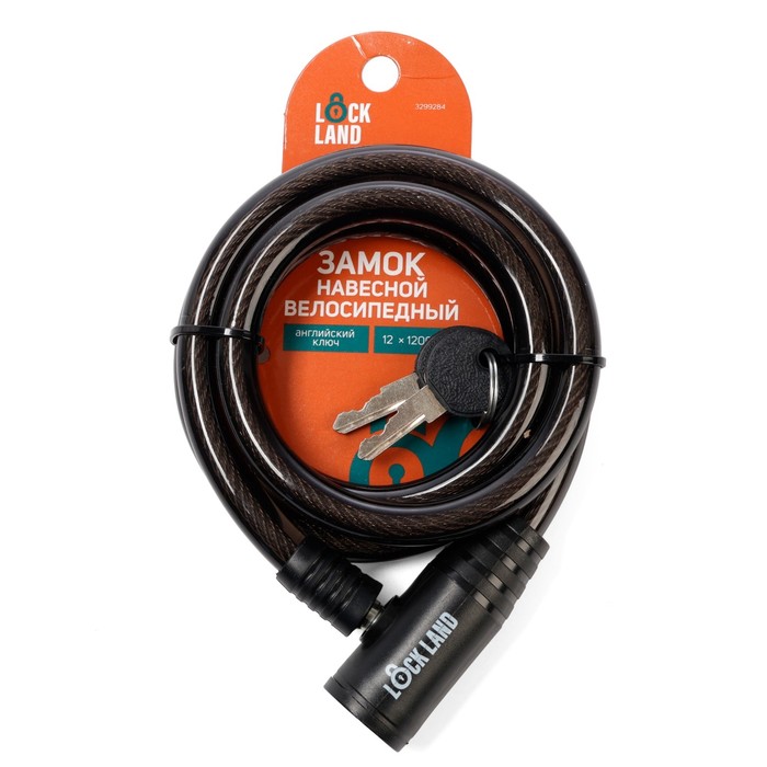 Замок навесной велосипедный LOCKLAND, 12×1200 мм, английский ключ с пластиковой ручкой — Характеристики