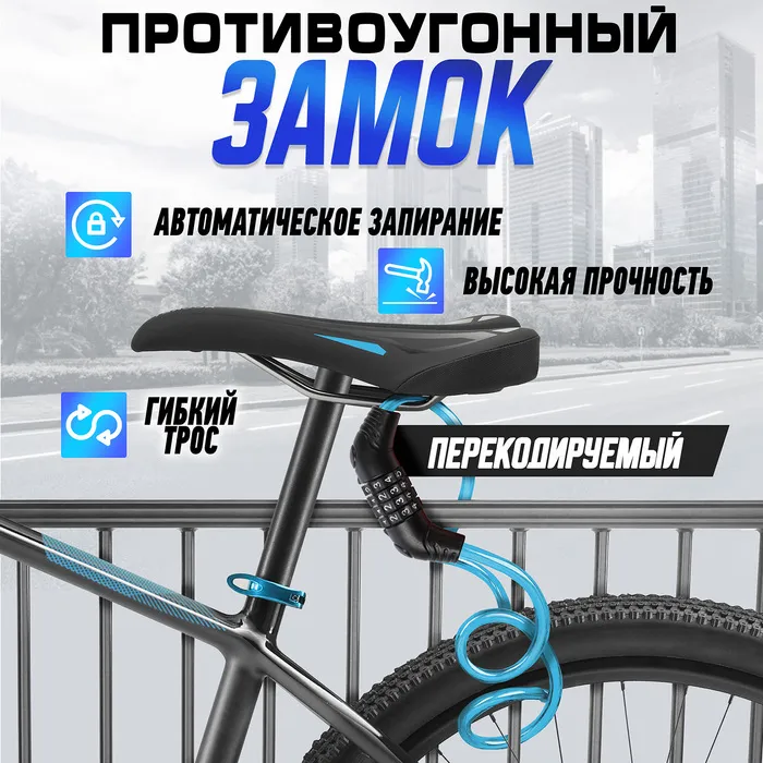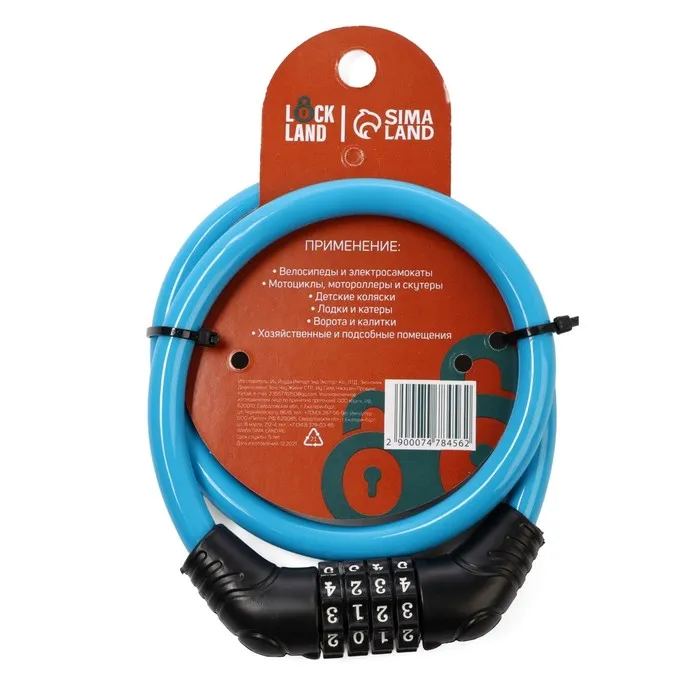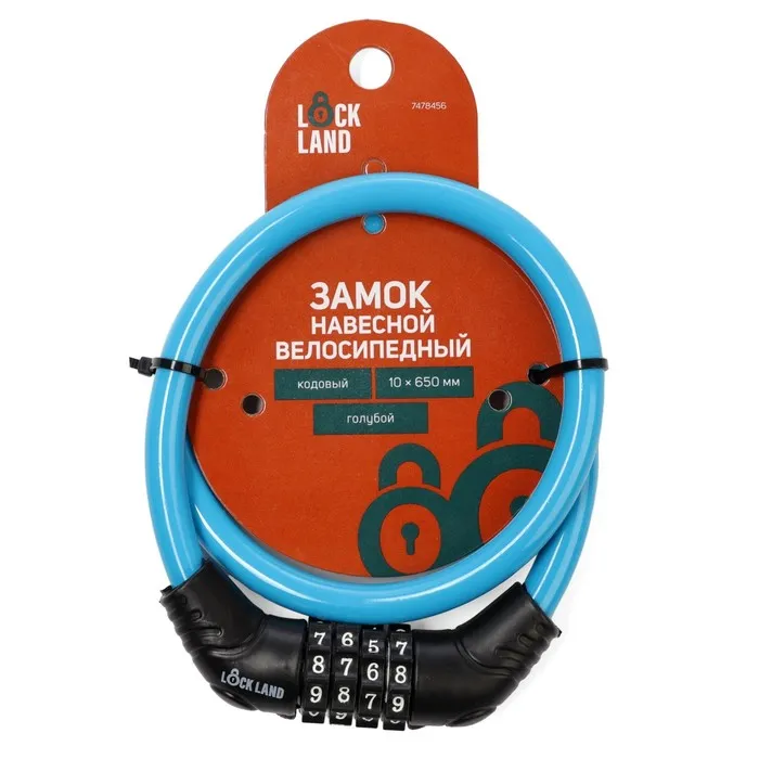 Замок навесной велосипедный LOCKLAND, кодовый, 10х650 мм, цвет голубой — Характеристики