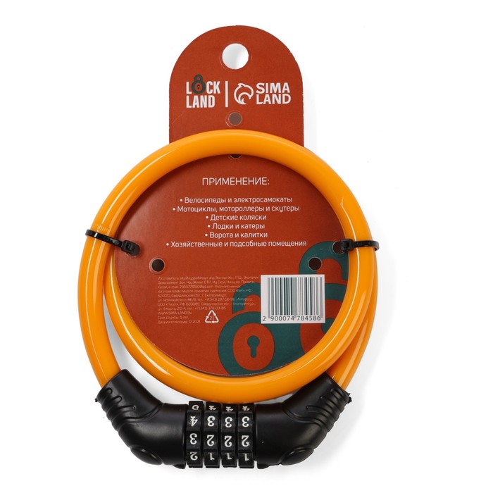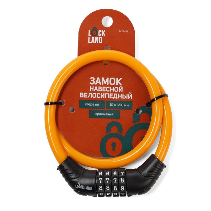 Замок навесной велосипедный LOCKLAND, кодовый, 10х650 мм, цвет оранжевый — Характеристики