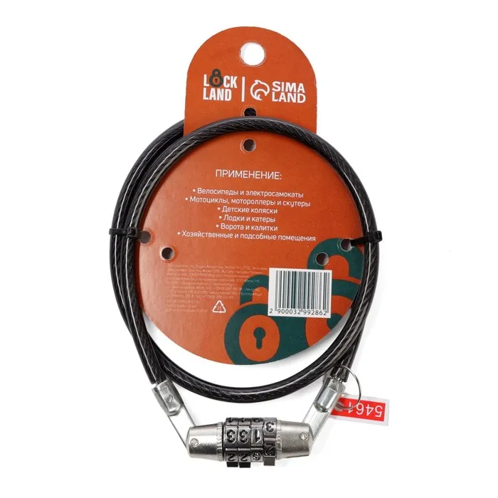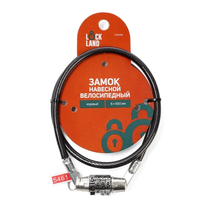Замок навесной велосипедный LOCKLAND, кодовый, 6х650 мм — Характеристики