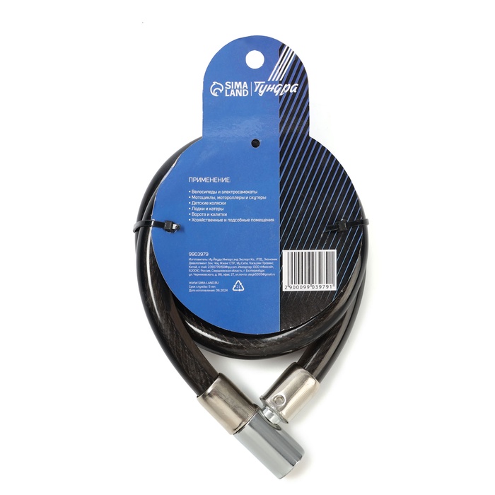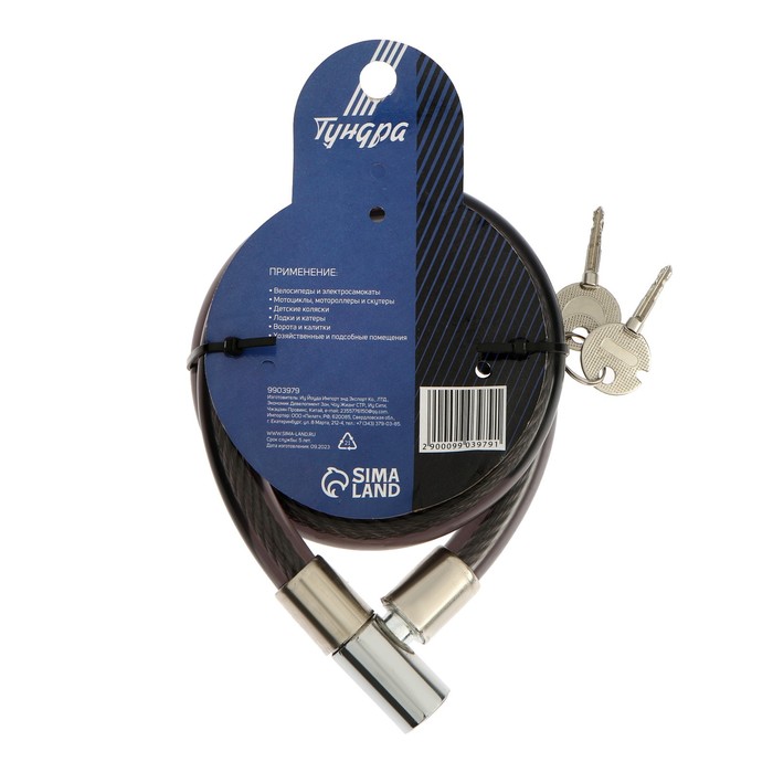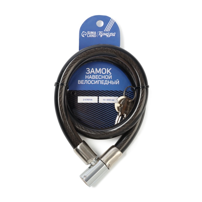 Замок навесной велосипедный ТУНДРА, 14×650 мм, 2 ключа, черный — Характеристики