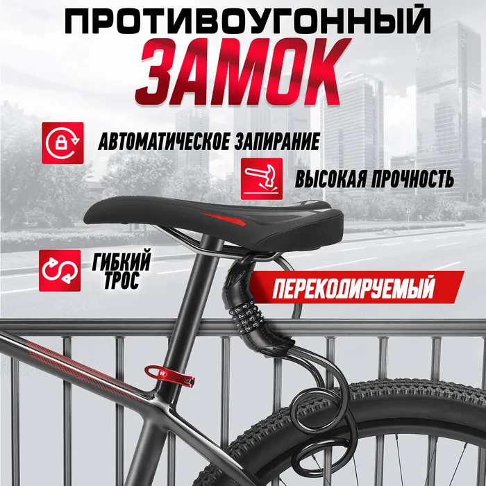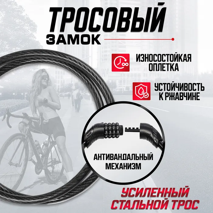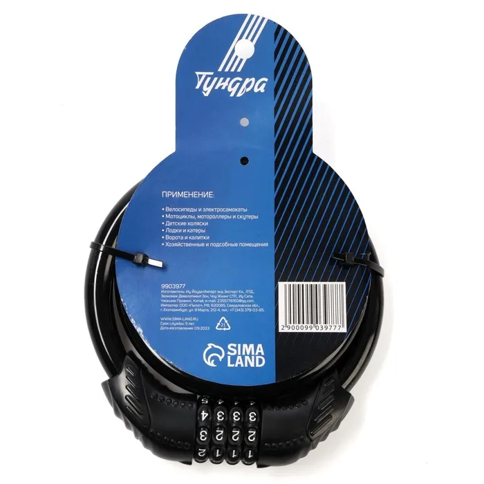 Замок навесной велосипедный ТУНДРА, 15×800 мм, кодовый, черный — Характеристики