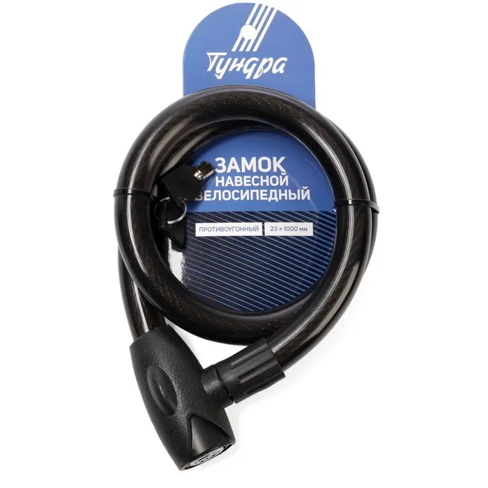 Замок навесной велосипедный ТУНДРА, 23×1000 мм, специальный ключ с пластиковой ручкой — Характеристики