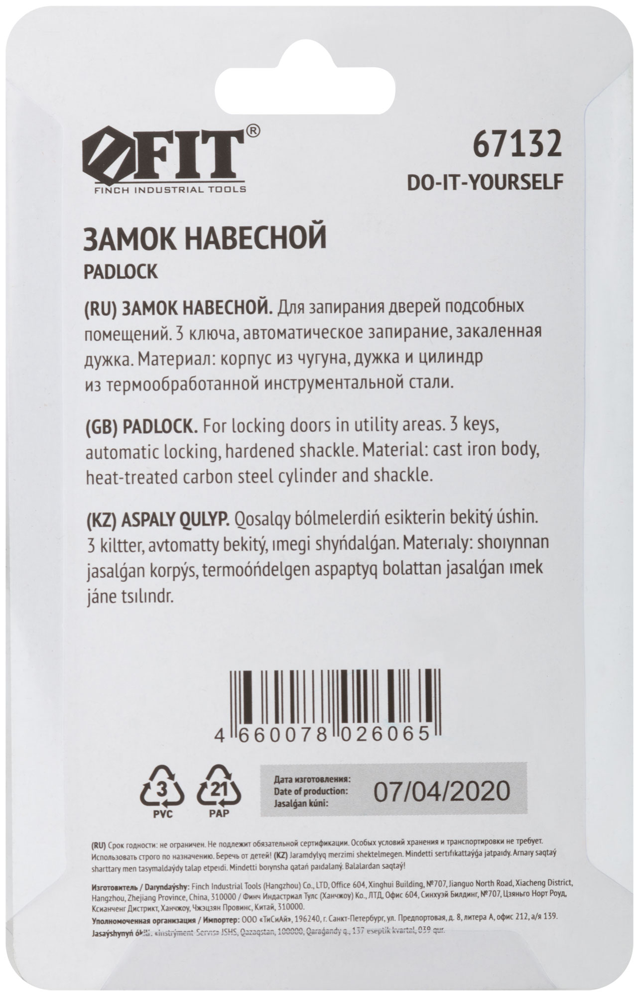 Выберите замок навесной FIT 67132, чтобы обеспечить надежную защиту ваших ценностей и объектов.