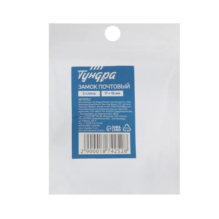 Замок почтовый ТУНДРА, 17×16 мм, 2 ключа — Характеристики