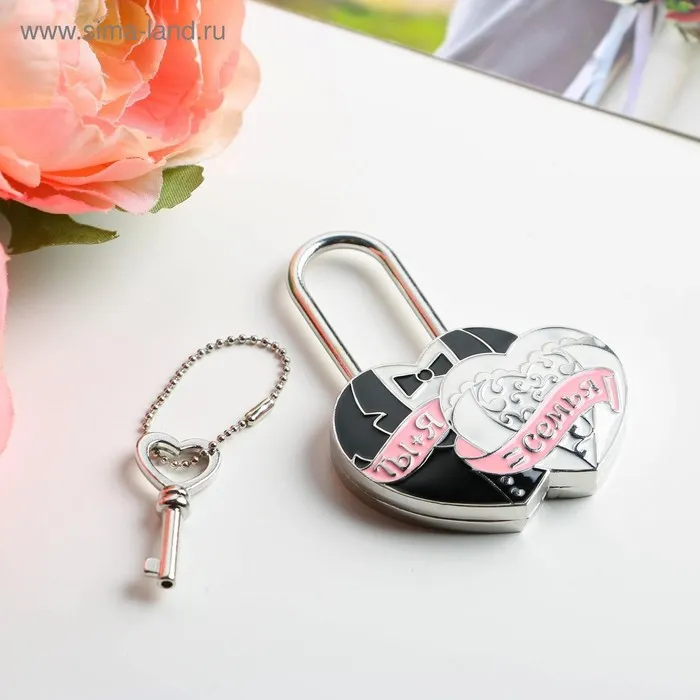 Замок свадебный с ключом любви «Ты + Я = Семья». — Характеристики