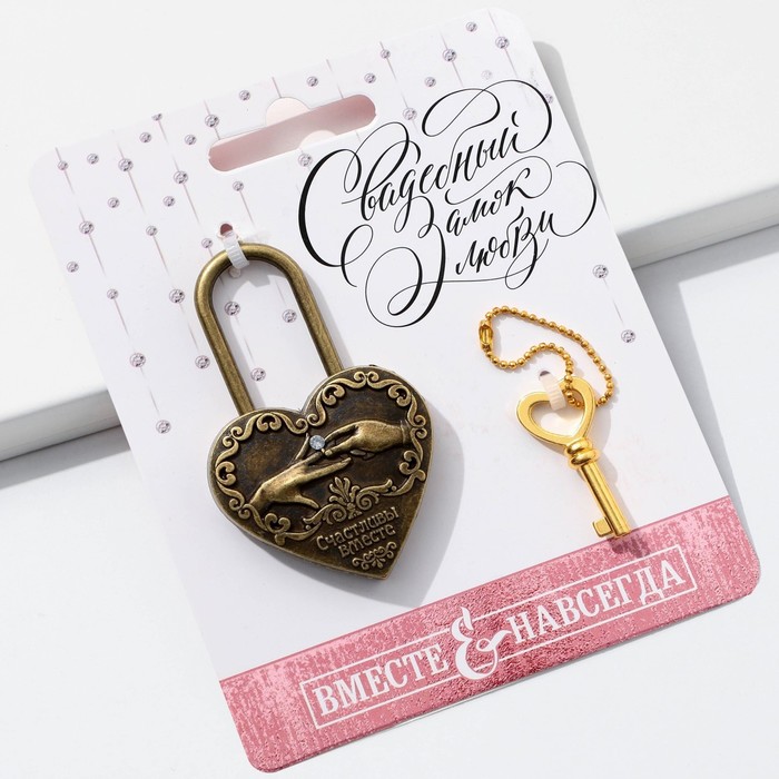 Замок свадебный с ключом «Счастливы вместе».