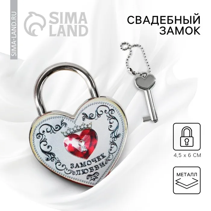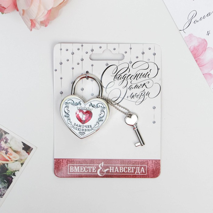 Замок для торжественной свадебной традиции - это символ любви. Навесной замок любви на свадьбе становится символом нерушимого союза, заключенного влюбленными в этот день. По традиции замок вешается на мост, загадывается желание о счастливой семейной жизни, а ключи от него выбрасываются в реку, через левое плечо. Это делается для того, чтобы никто никогда не смог открыть этот замок и нарушить клятву, данную влюбленными. Свадебный замок можно повесить на мост по традиции или на дерево в специалных парках или аллеях молодожен, которые есть во многих городах. Замок навесной свадебный имеет в комплекте ключик, замок закрывается и открывается. Традиция закрывать замок на свадьбу объединяет сердца мужа и жены навсегда. Свадебный декоративный замочек будет отлично смотреться на фотосессии и видео.