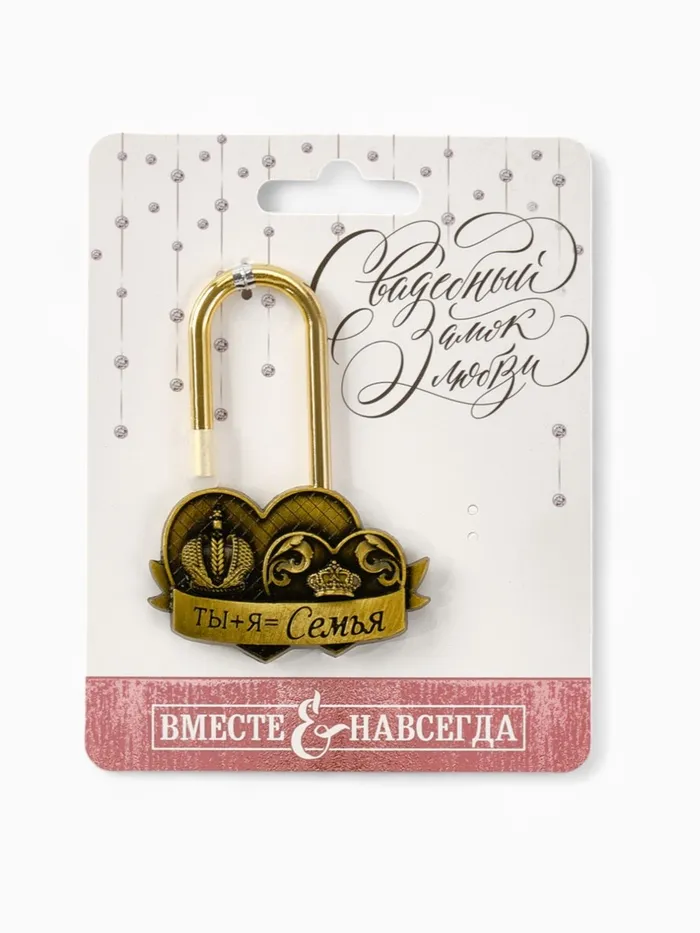 Замок свадебный с ключом «Ты + Я = СЕМЬЯ».