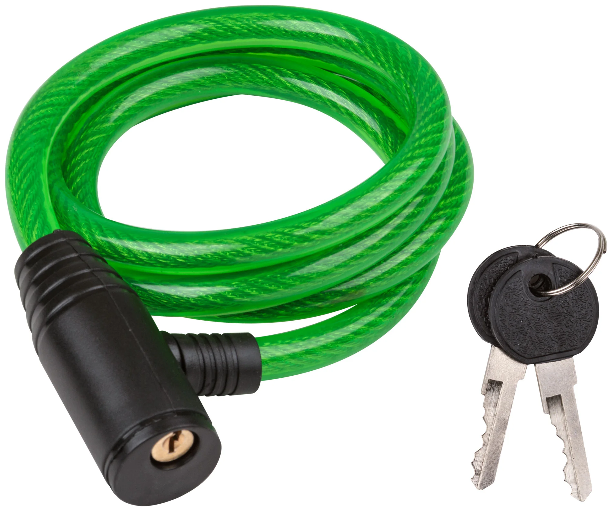 Данный замок выполнен из прочного троса из инструментальной стали и имеет оплетку из ПВХ, что защищает его от коррозии и механических повреждений. Пластиковый корпус и сердечник из цинкового сплава обеспечивают дополнительную прочность конструкции.