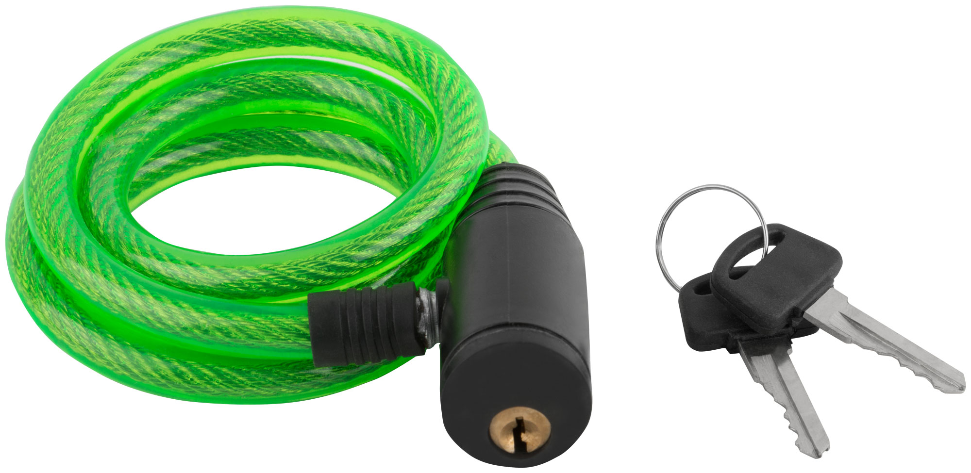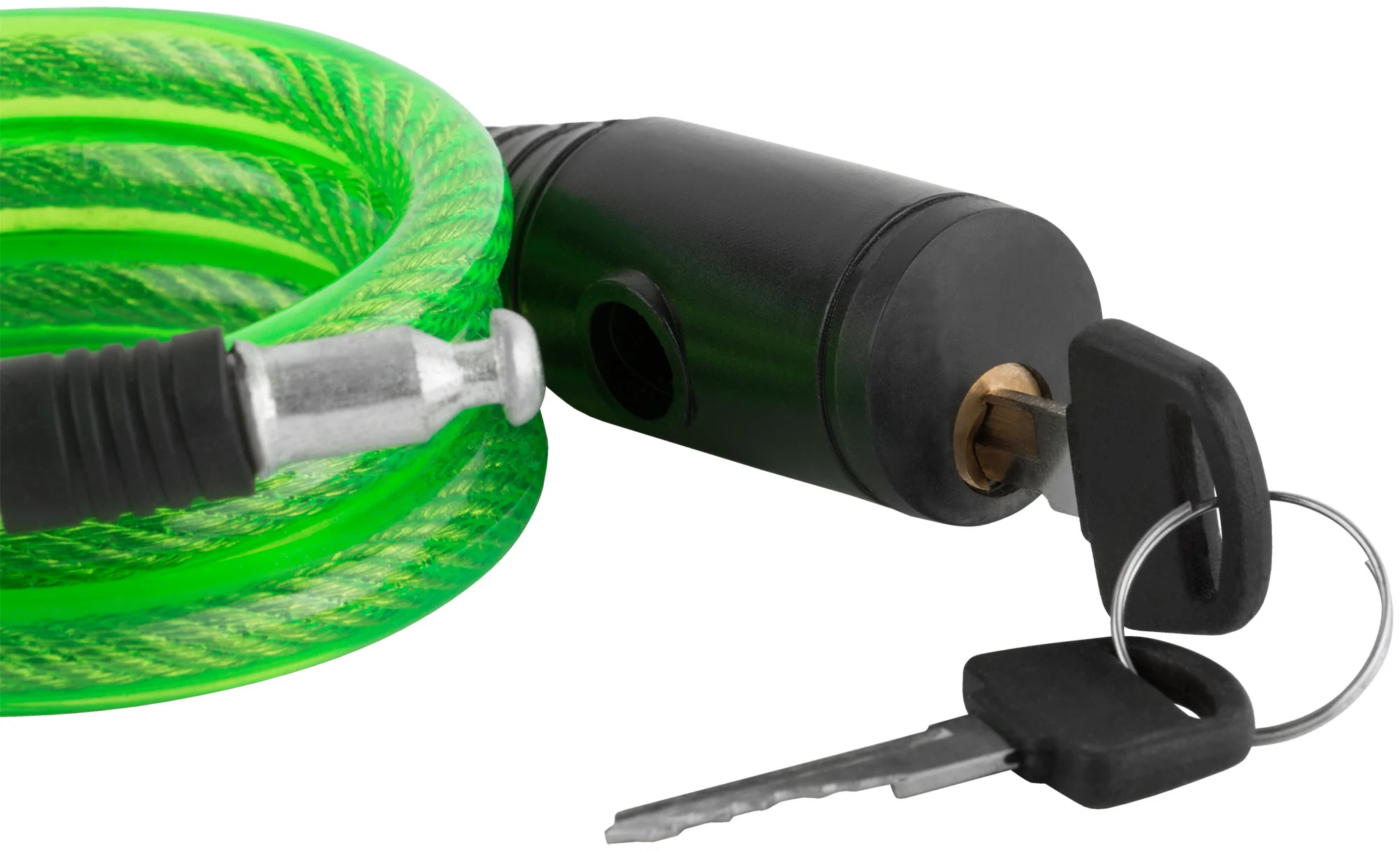 Замок выполнен из троса из инструментальной стали, что обеспечивает его прочность и устойчивость к порезам. ПВХ-оплетка защищает трос от коррозии и увеличивает срок службы. Пластиковый корпус и сердечник из цинкового сплава гарантируют надежность конструкции.