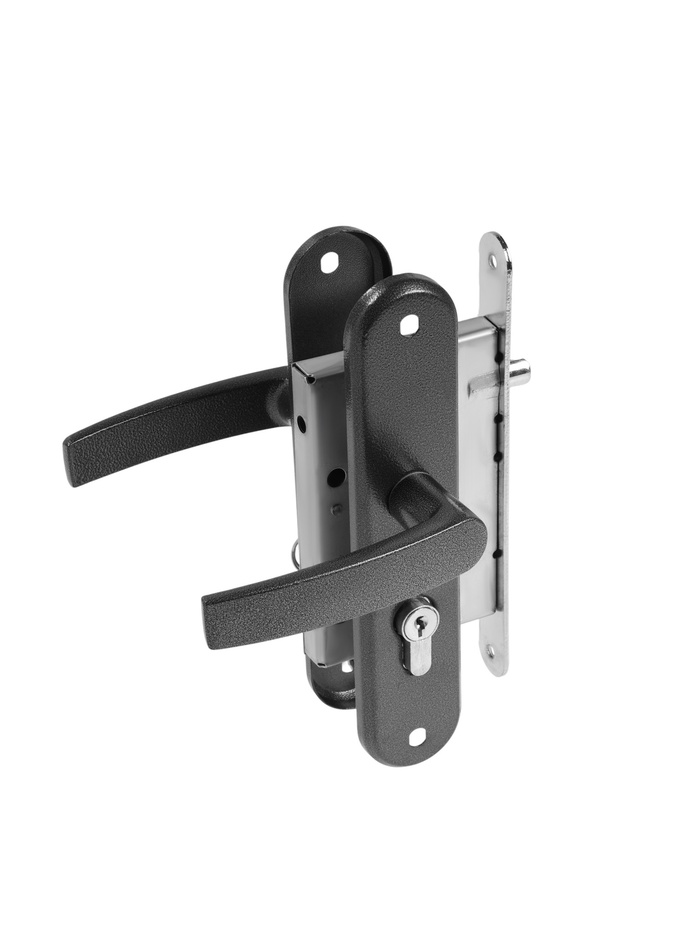 - Встроенная защелка: Фиксирует дверь в закрытом положении, ручка служит для открывания.