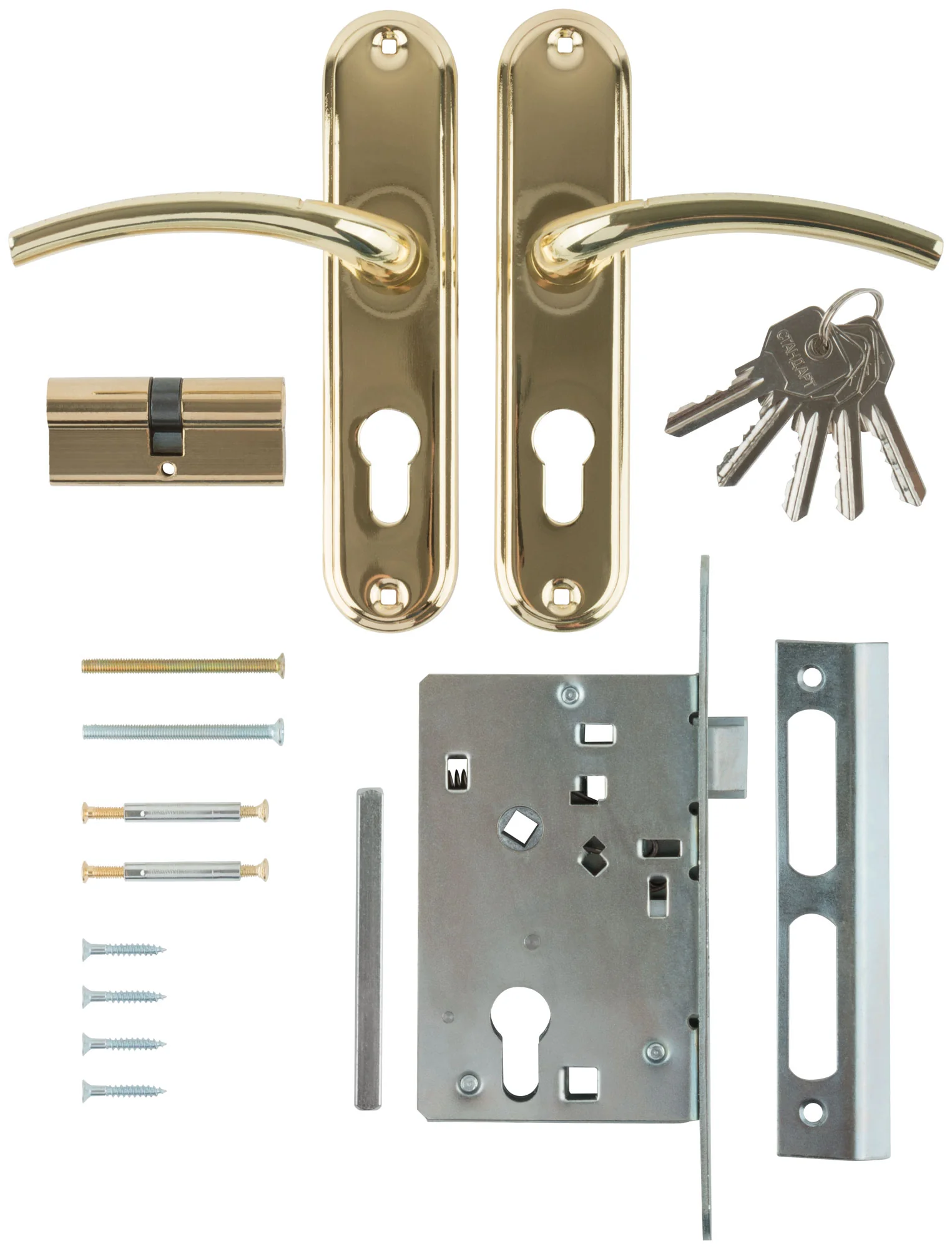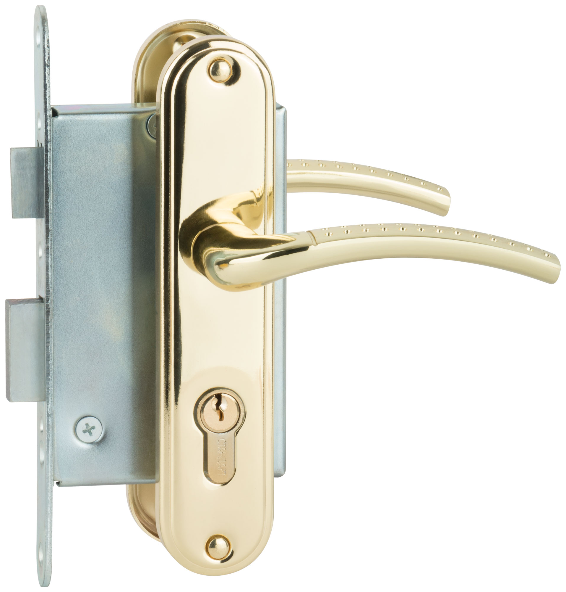 Врезной замок с ручками «Стандарт» ЗВ4-7.03С, золото для деревянных дверей