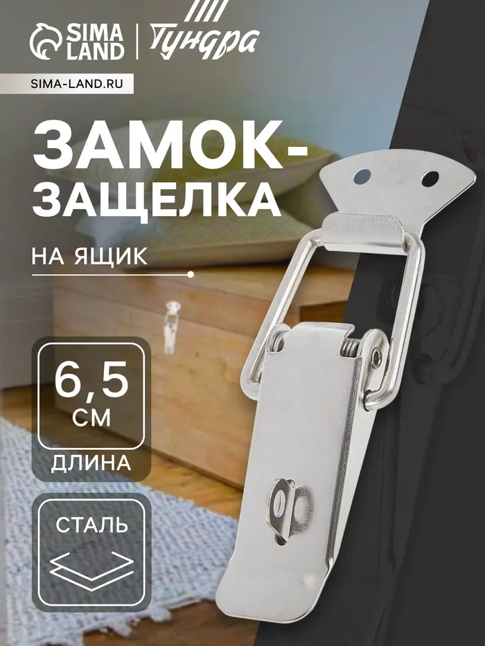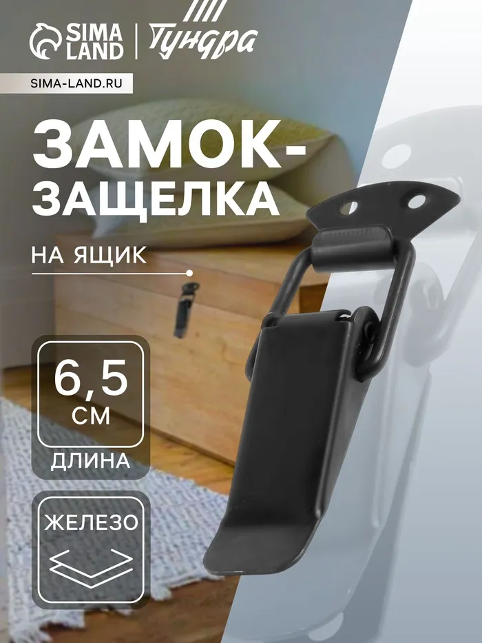 Замок-защелка на ящик Z16, 6.5 см, железный, с проушиной