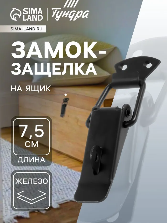 Замок-защелка на ящик, 7.5 см, железный, черный,10 шт.