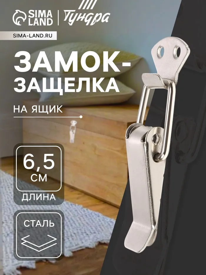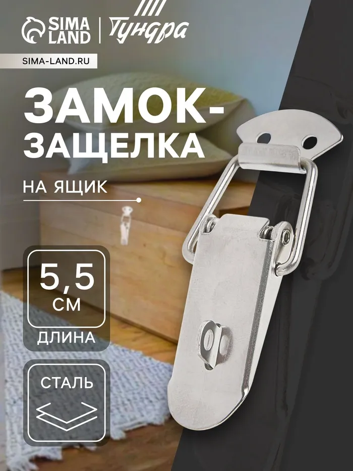 Замок защелка на ящик ТУНДРА, 5.5 см, оцинкованная