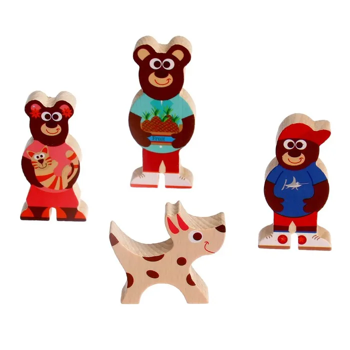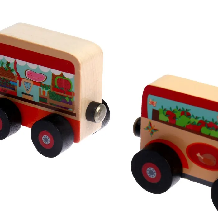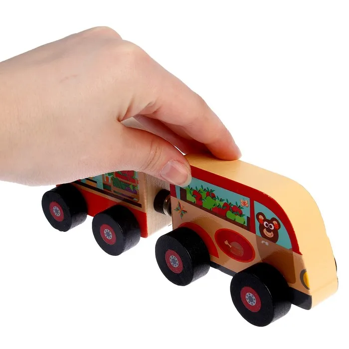 - В комплект входят четыре деревянные фигурки, грузовик и прицеп (магнитный).