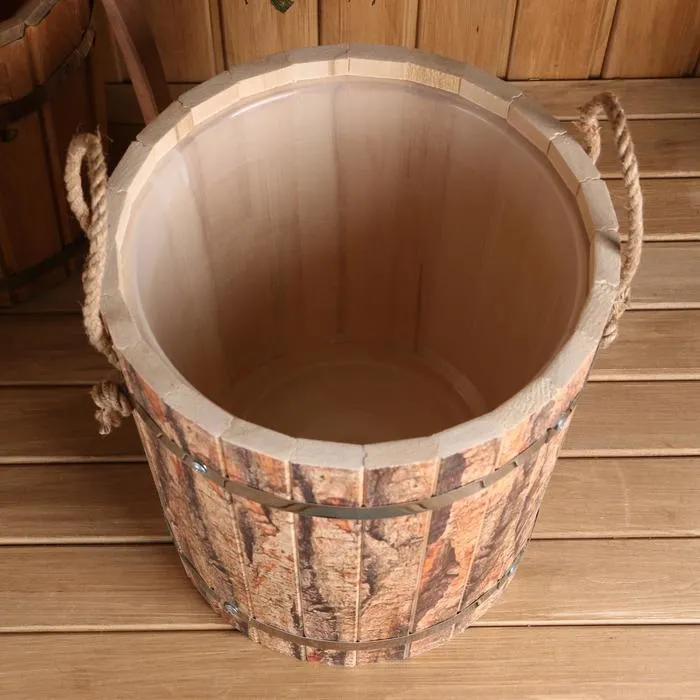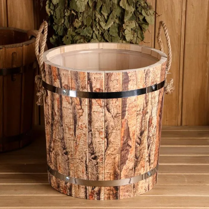 Запарник из липы, 13 л, пластиковая вставка, нержавеющий обод, ручки веревки, "Кора тёмная" — Характеристики