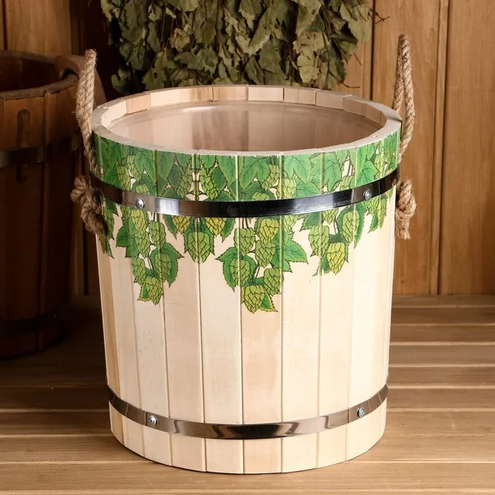 Запарник из липы, 13 л, пластиковая вставка, нержавеющий обод, веревки, "Хмельные косы" — Характеристики