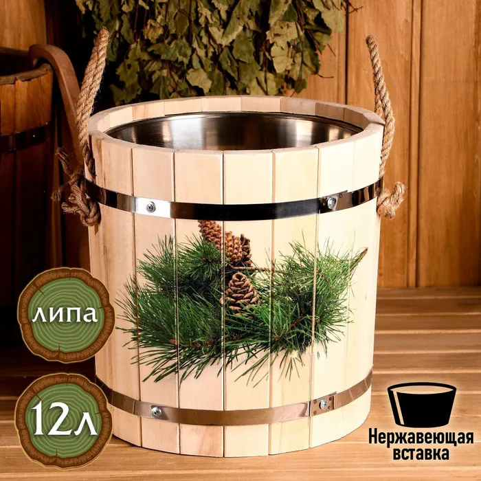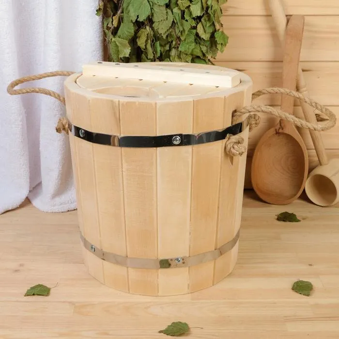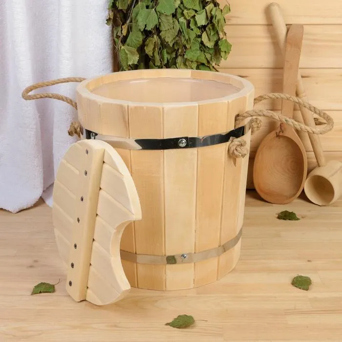Запарник из липы, 9л, пластиковая вставка, с крышкой, "Добропаровъ" — Характеристики