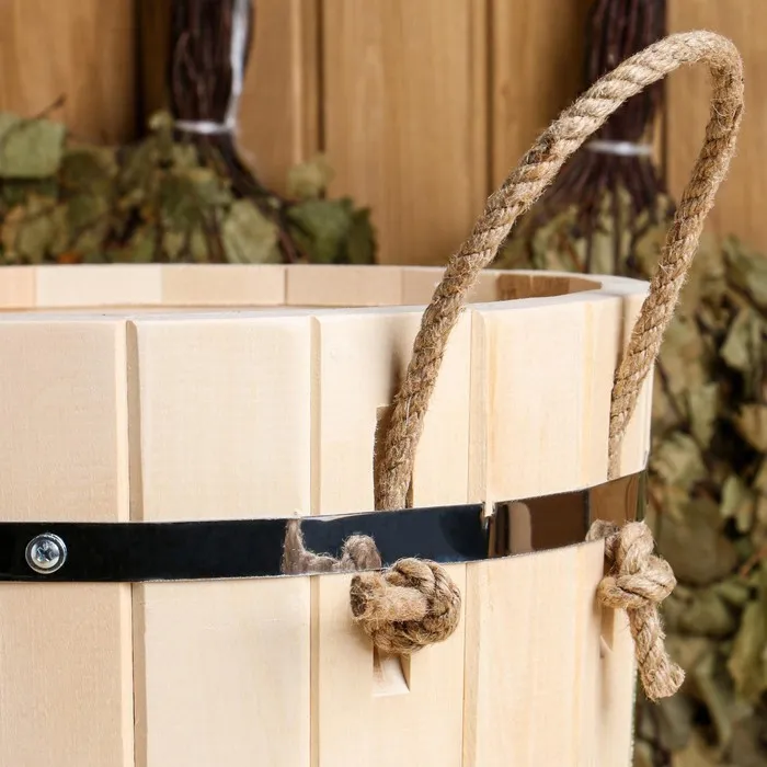 Запарник-ведро из липы, 13 л, пластиковая вставка, нержавеющий обод, "Еловая ветка" — Характеристики