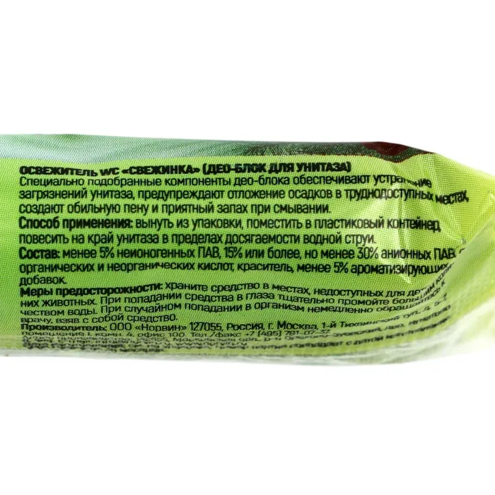 Способ применения: вынуть из упаковки, повесить на край унитаза в пределах досягаемости водной струи.