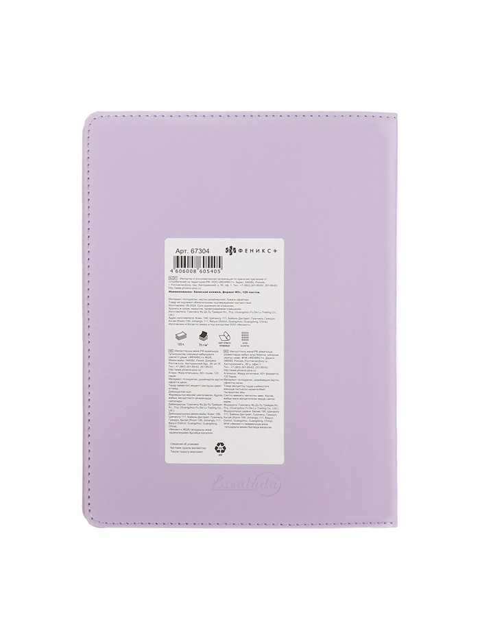 Записная книжка А5+ 120 листов, ESCALADA, мягкая обложка, искуственная кожа, блок 70 г/м², сиреневый — Характеристики