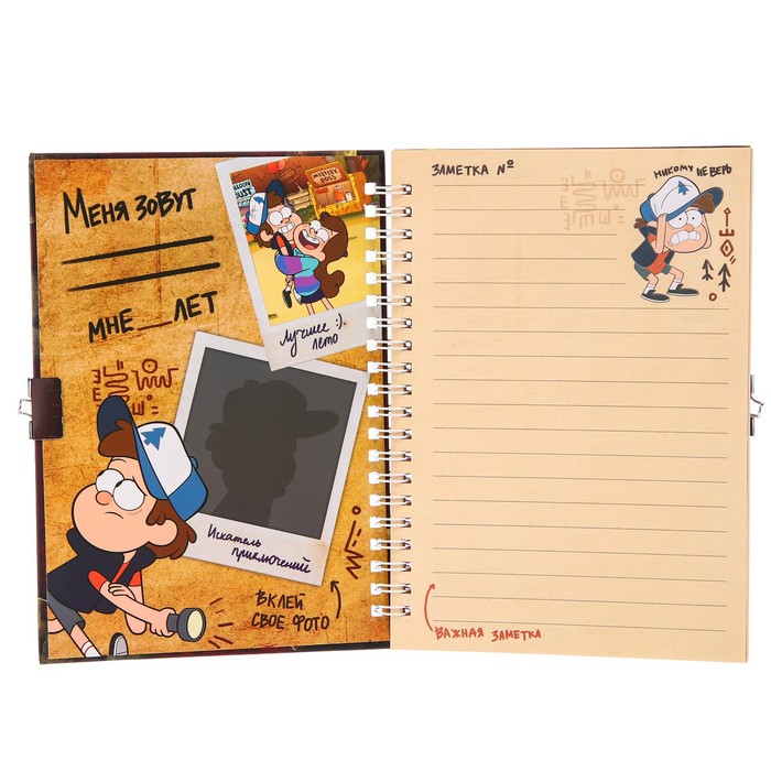 Записная книжка А5 на замочке "Дневник тайных открытий", 50 листов, Гравити Фолз — Характеристики