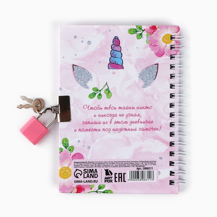 Записная книжка на замочке А6, 50 л. «Мой волшебный дневничок» — Характеристики
