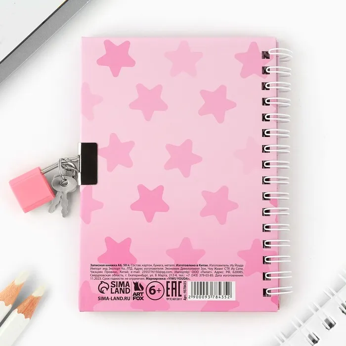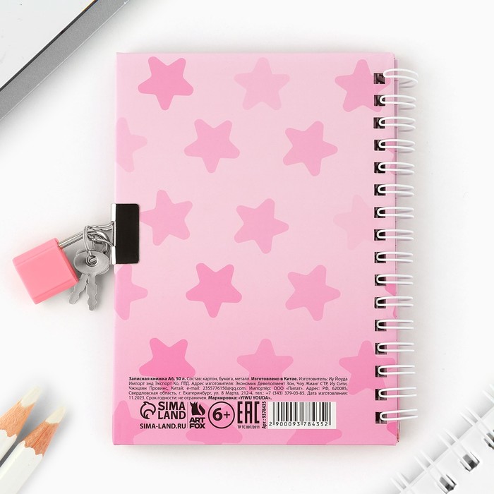 Записная книжка на замочке А6, 50 л. «Секретики милашки» — Характеристики