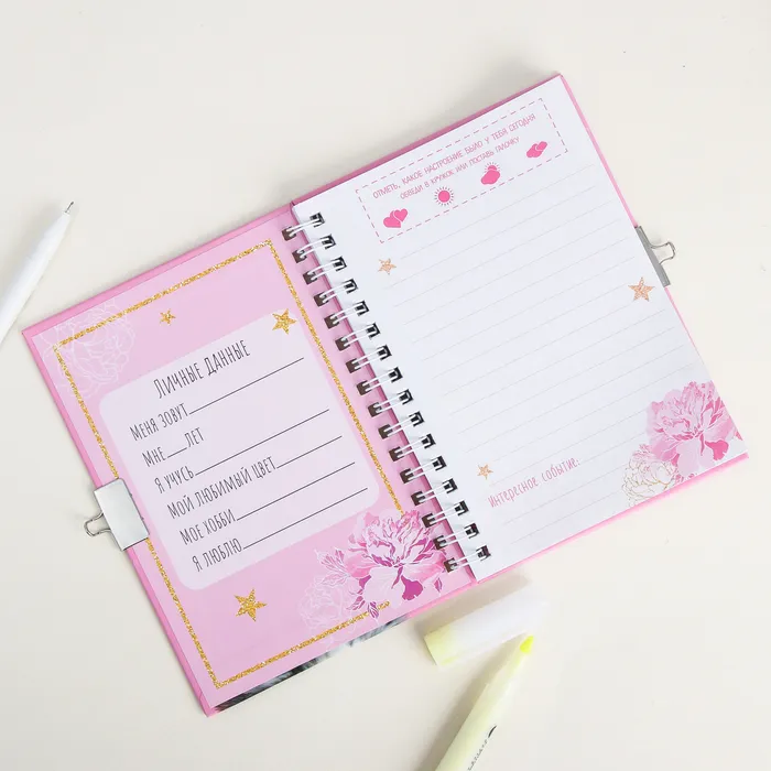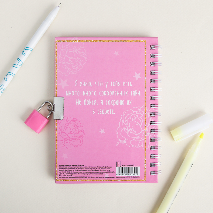 Записная книжка на замочке А6, 50 листов «Дневничок самой чудесной» — Характеристики