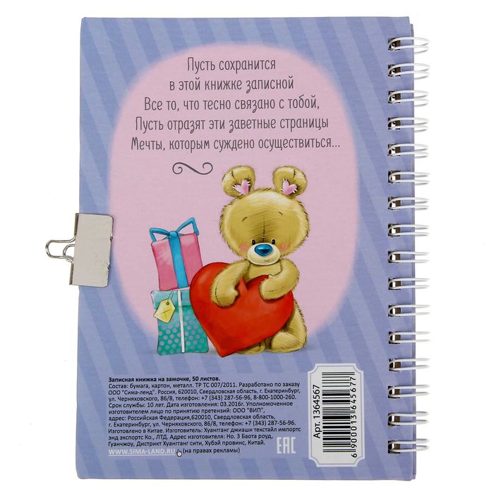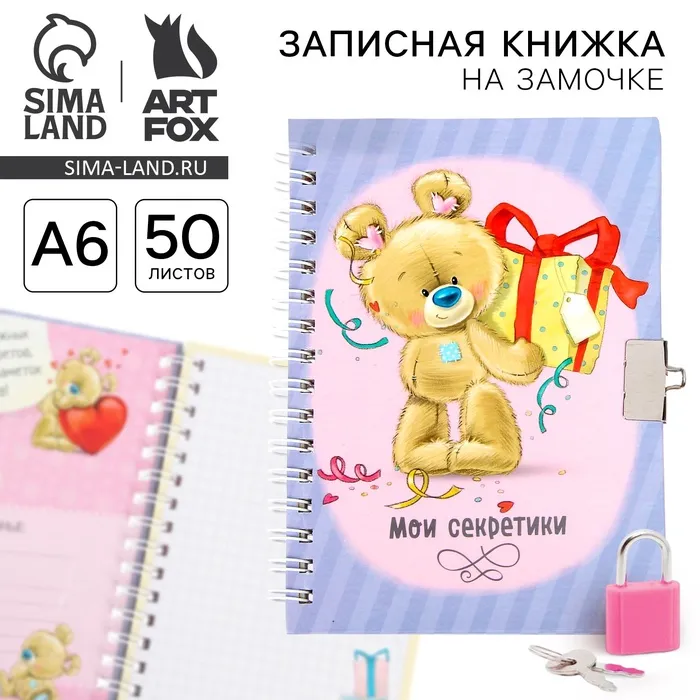 Записная книжка на замочке А6, 50 листов «Мои секретики» — Характеристики