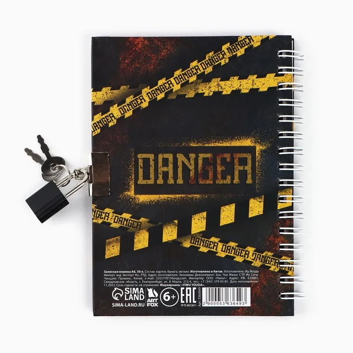 Записная книжка на замочке А6, 50 листов «Секретные материалы» — Характеристики