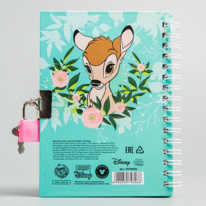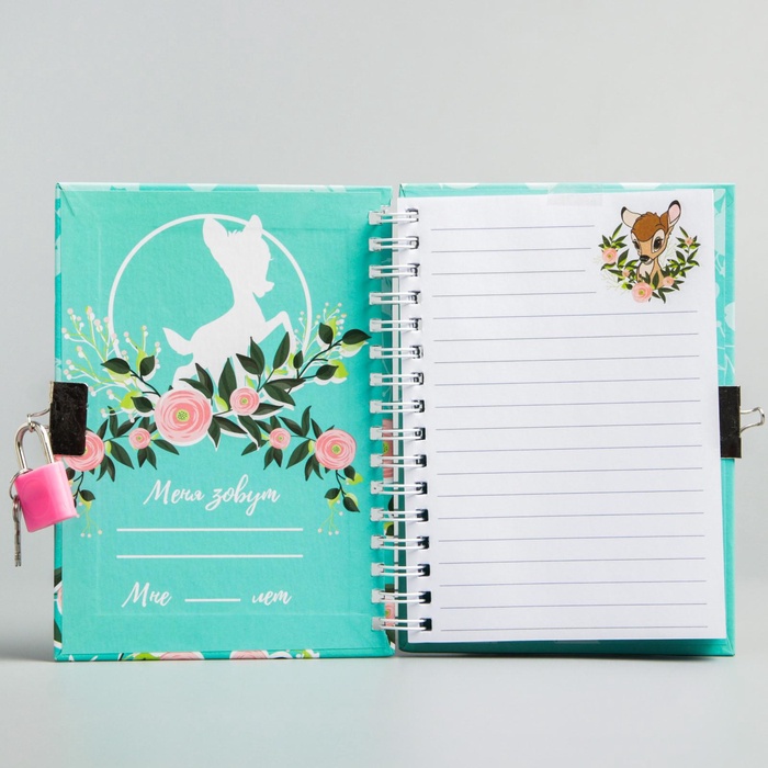 Записная книжка на замочке А6, «Бэмби», 50 листов, Disney — Характеристики