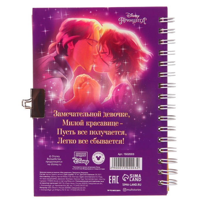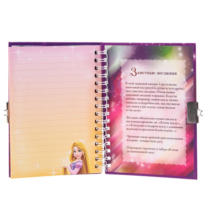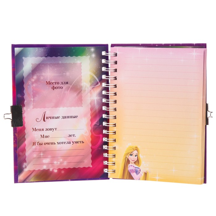 Записная книжка на замочке А6, «Мои секретики», 50 листов, Рапунцель — Характеристики