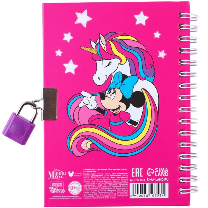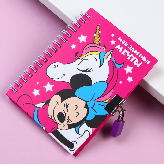 Записная книжка на замочке А6, "Мои заветные мечты", 50 листов, Минни Маус — Характеристики