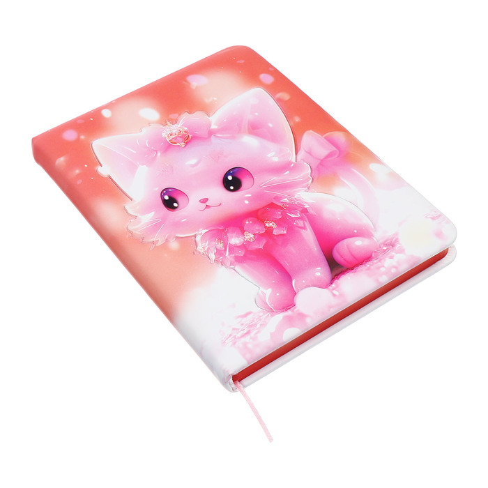 Записная книжка подарочная 96 листов, в линейку, цветной срез, обложка ПВХ, 3D Кошка, 17.7×12.4 см