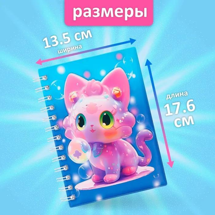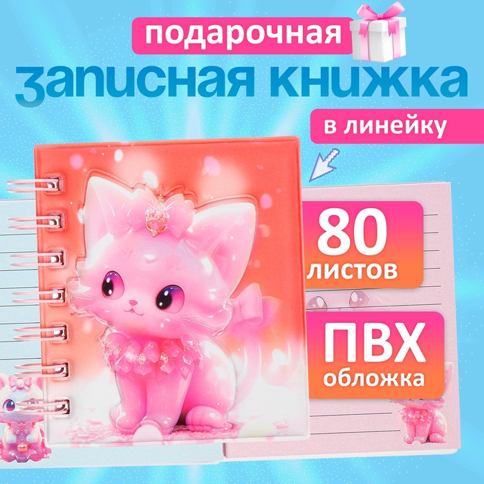 Записная книжка подарочная, на гребне 80 листов, в линейку, обложка ПВХ 3D, Кошка, 17.6×13.5 см — Характеристики