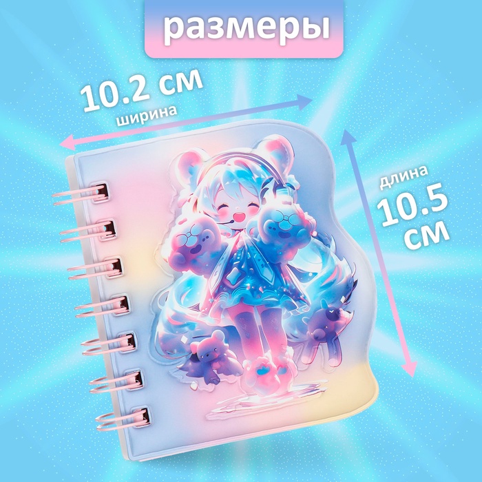 Записная книжка подарочная, на гребне 80 листов, в линейку, цветной блок, обложка ПВХ 3D, Аниме, 10.2×10.5 см — Характеристики