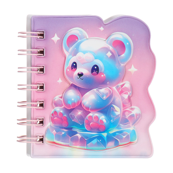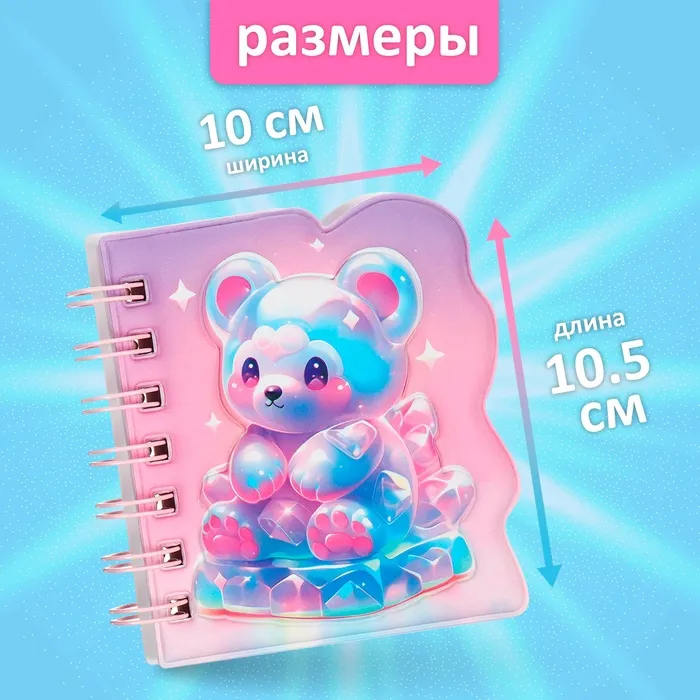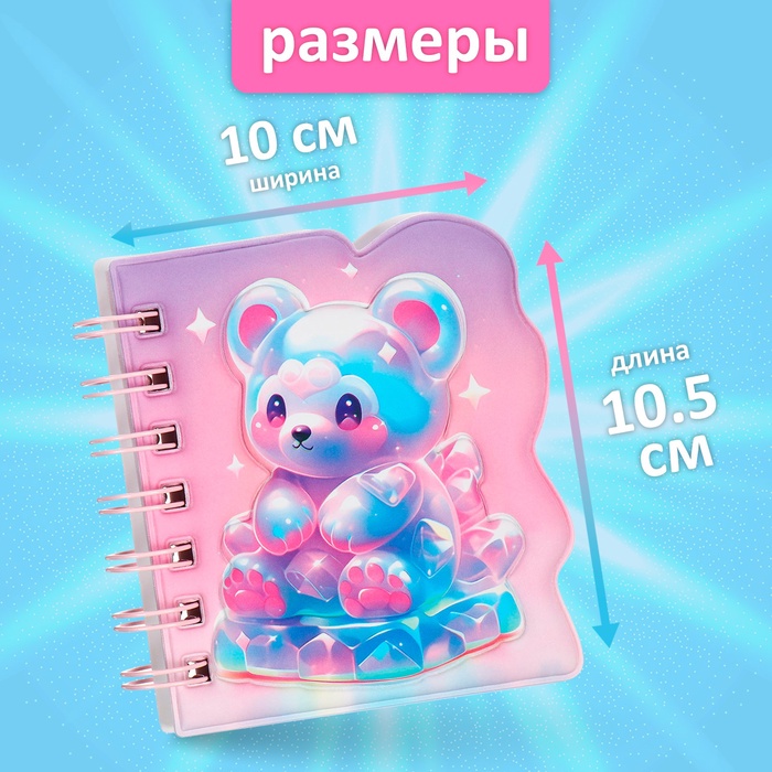 Записная книжка подарочная на гребне, 80 листов в линейку, цветной блок, обложка ПВХ 3D, Мишка, 10×10.5 см — Характеристики